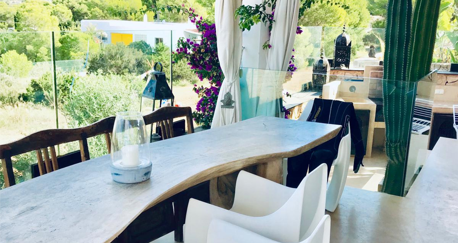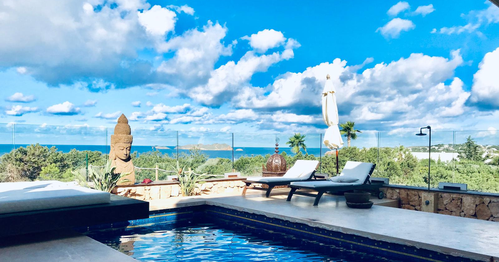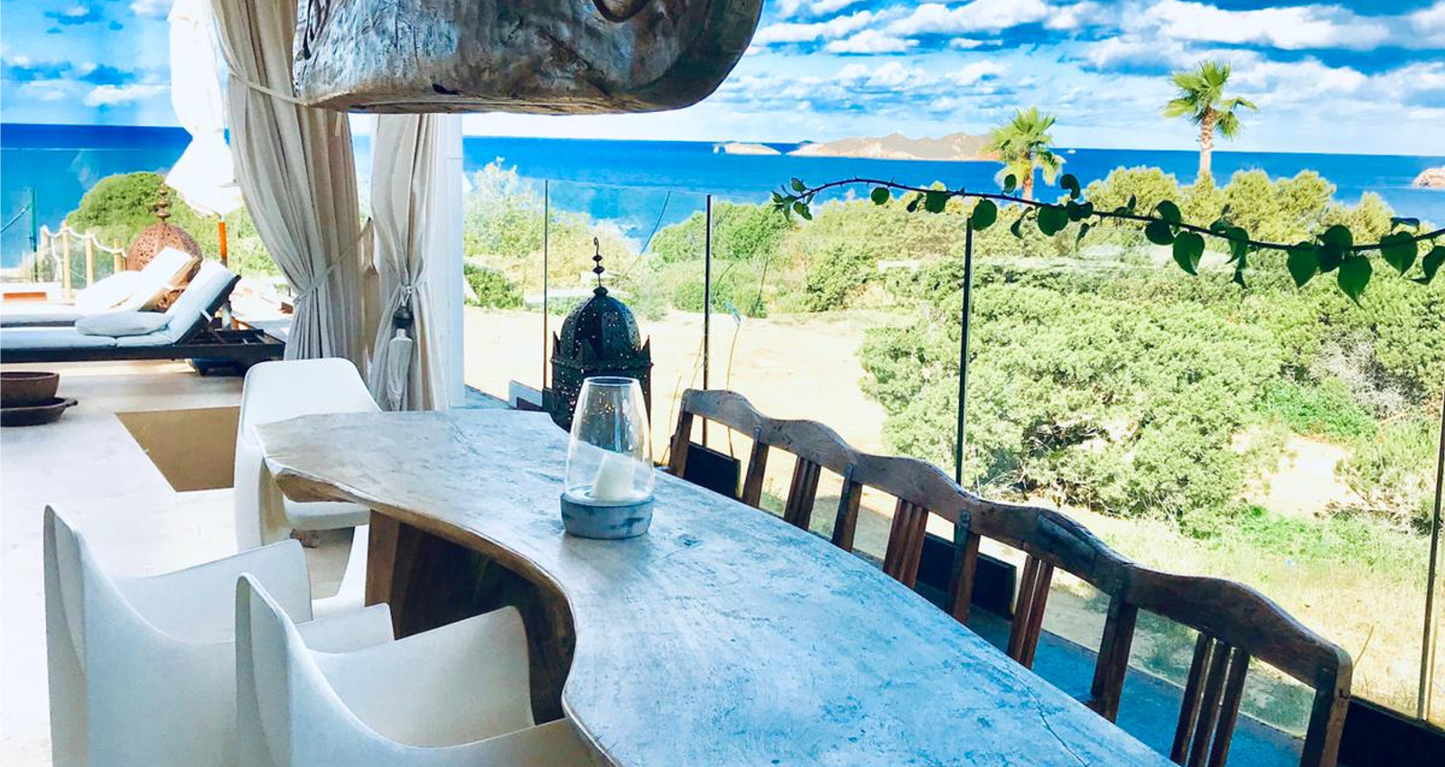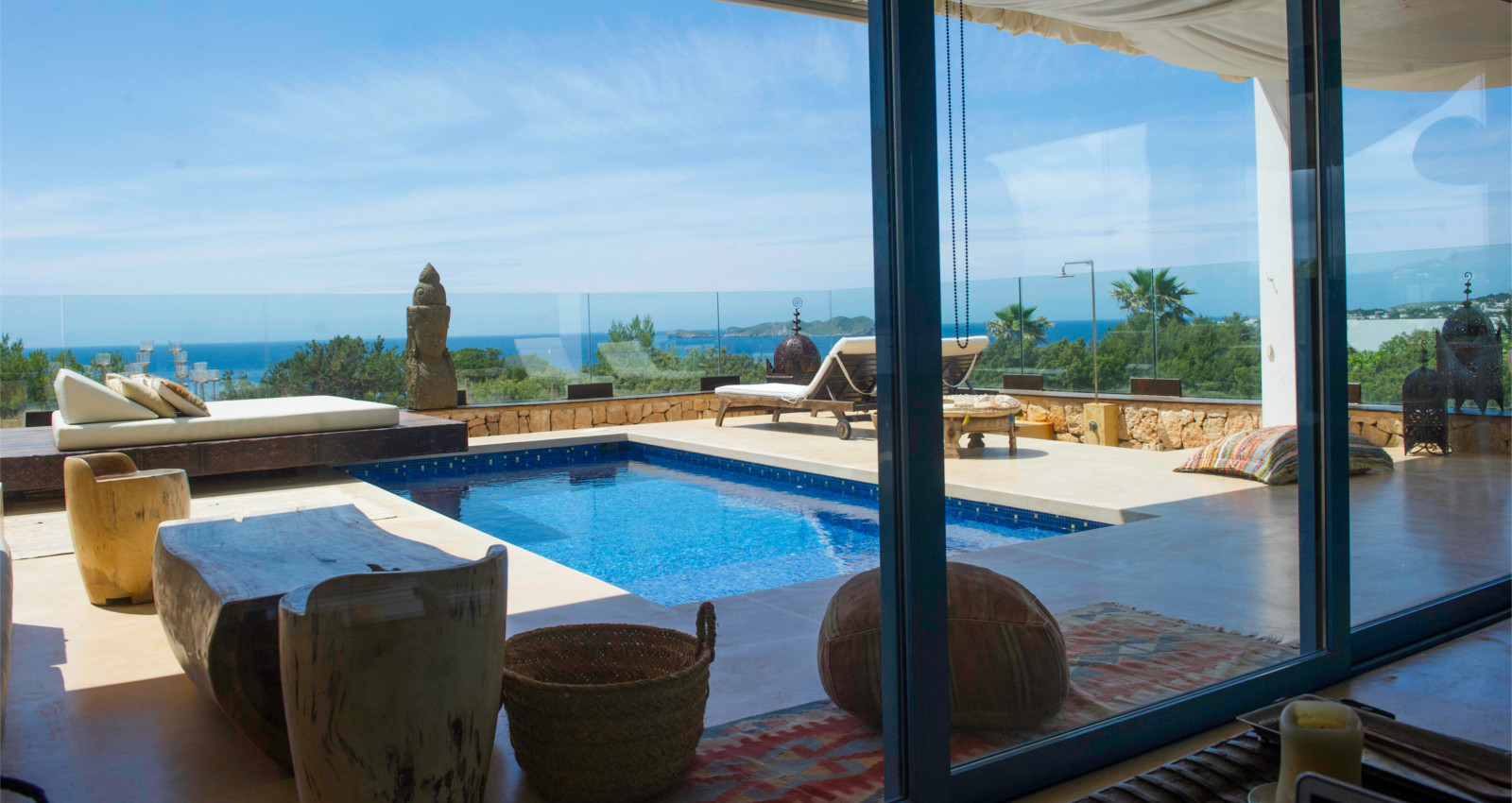 House with a large private swimming pool by the sea. It is next to Cala Tarida with spectacular views of the sunset in the most beautiful area of Ibiza. 600 m away from the beach, Can Vidal has all the comfort. One of the main attractions of the house is the swimming pool with sea and sunset views, the sun sets spectacularly over the Mediterranean Sea and the islands of S’Espartá. The two chill out terraces are perfect to enjoy your holidays in a unique and relaxed atmosphere by the sea.