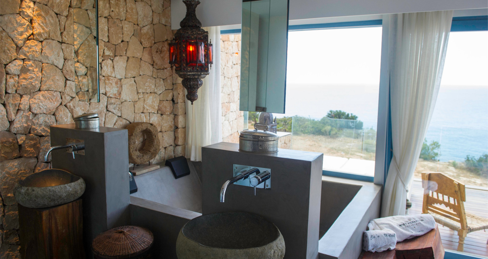 All the house interior is plastered with micro cement, the furniture is from Bali and Morocco. There is a plasma TV in the living room and suite, Wi-Fi and air conditioning in all the rooms. The kitchen is exceptional and fully equipped, with dishwasher, oven, fridge, microwave and a Nespresso coffeemaker.